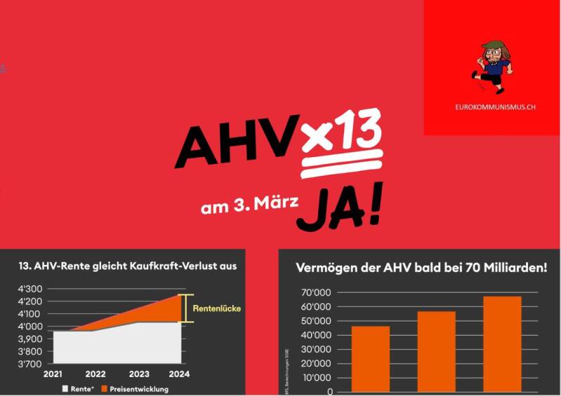 Ma perché l'establishment neoliberale si oppone alla 13a mensilità AVS? Perché vuole indebolire ulteriormente lo Stato sociale, privatizzare il più possibile e indebolire la posizione dei lavoratori e dei sindacati, in modo che la manodopera a basso costo sia disponibile in grandi quantità. Per lo stesso motivo, sostengono anche aumenti dell'età di pensione (ad esempio l'attuale iniziativa dei Giovani Liberali).