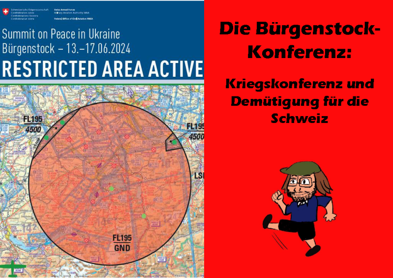 La conferenza sulla guerra in Ucraina organizzata dalla Svizzera si è svolta il 15 e 16 giugno 2024. Ufficialmente doveva essere una "conferenza di pace" per avviare il processo di pace nella guerra in Ucraina. Ne è emersa, come era prevedibile, una conferenza di guerra dei Paesi occidentali e dei loro alleati, in cui è stato ribadito il pieno sostegno all'Ucraina. Sono stati invitati oltre 160 Paesi, ma solo 90 si sono presentati e solo 78 hanno firmato la dichiarazione finale. La Russia, invece, non è stata invitata, il che ha escluso fin dall'inizio una "conferenza di pace", poiché le conferenze di pace sono possibili solo con tutte le parti in guerra.
